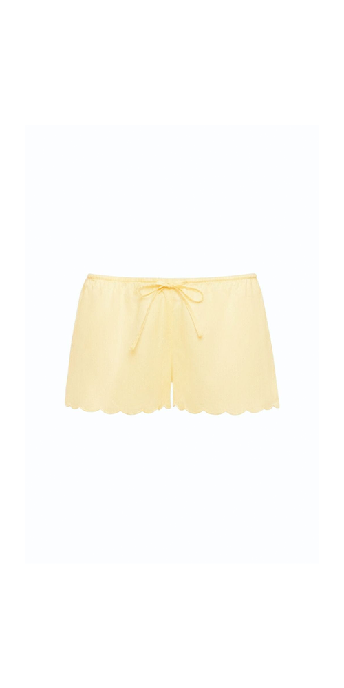 The Scalloped Low-Rise Drawstring Short in Sunshine by Montce is an easy, throw-on essential with a playful edge. Designed in a bright sunshine hue with delicate scalloped trim, it features a relaxed low-rise fit and adjustable drawstring waist. Lightweight and effortless, it’s perfect for beach days, poolside lounging, and everything in between.