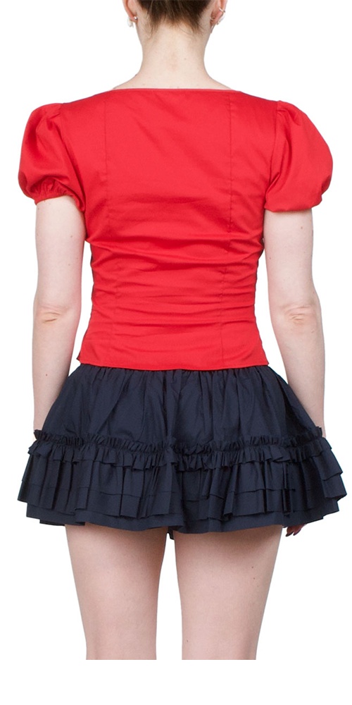 Regular price $455.00 Sale price $319.00 Save 30%This Sandy Liang Walnut Top in Red is made from stretch cotton poplin fabric for comfort and fit. It features a decorative bow at the neckline and closes with mother-of-pearl buttons. The puffed sleeves add a stylish touch to this versatile top that can be dressed up or down for different occasions.