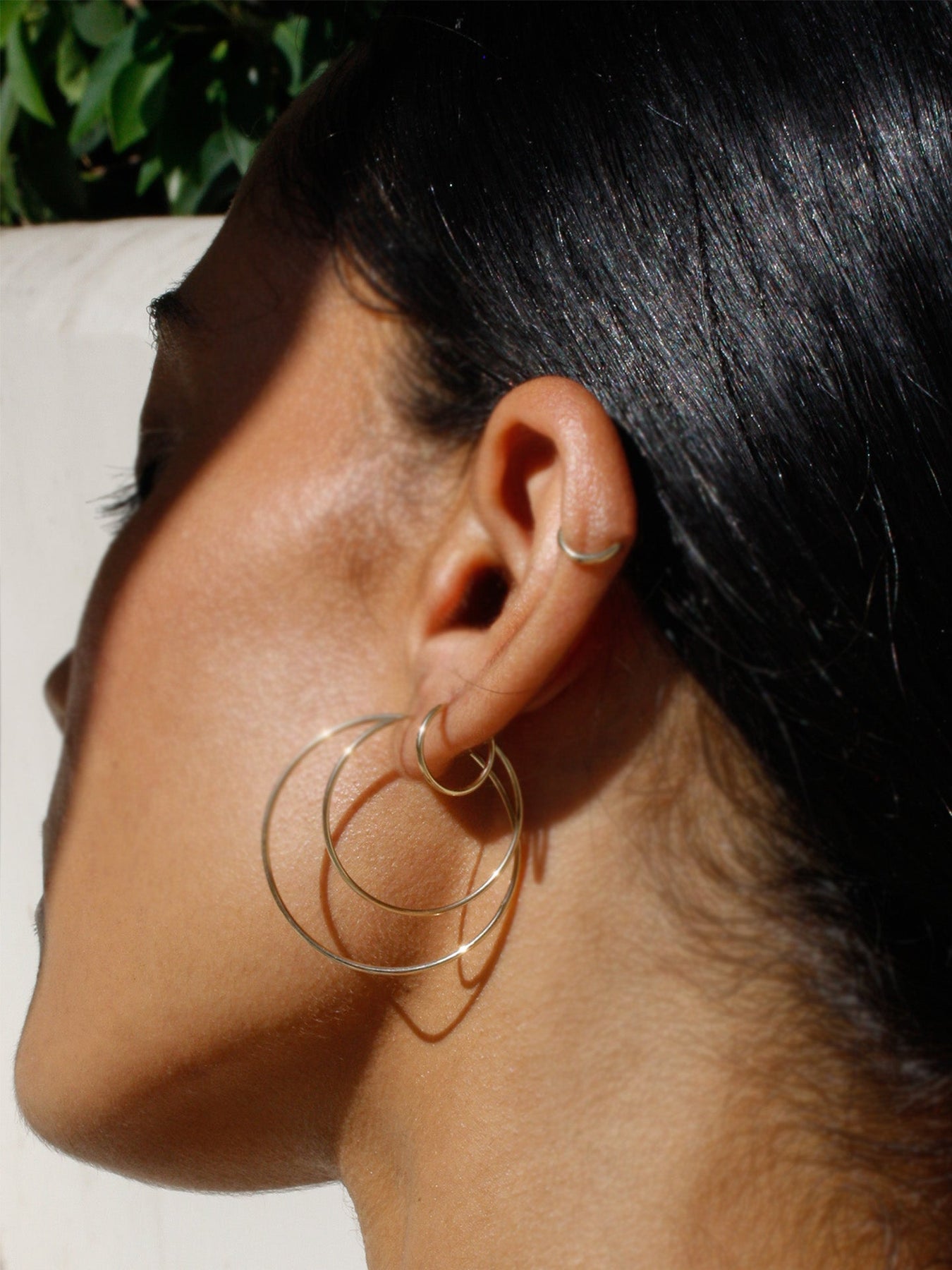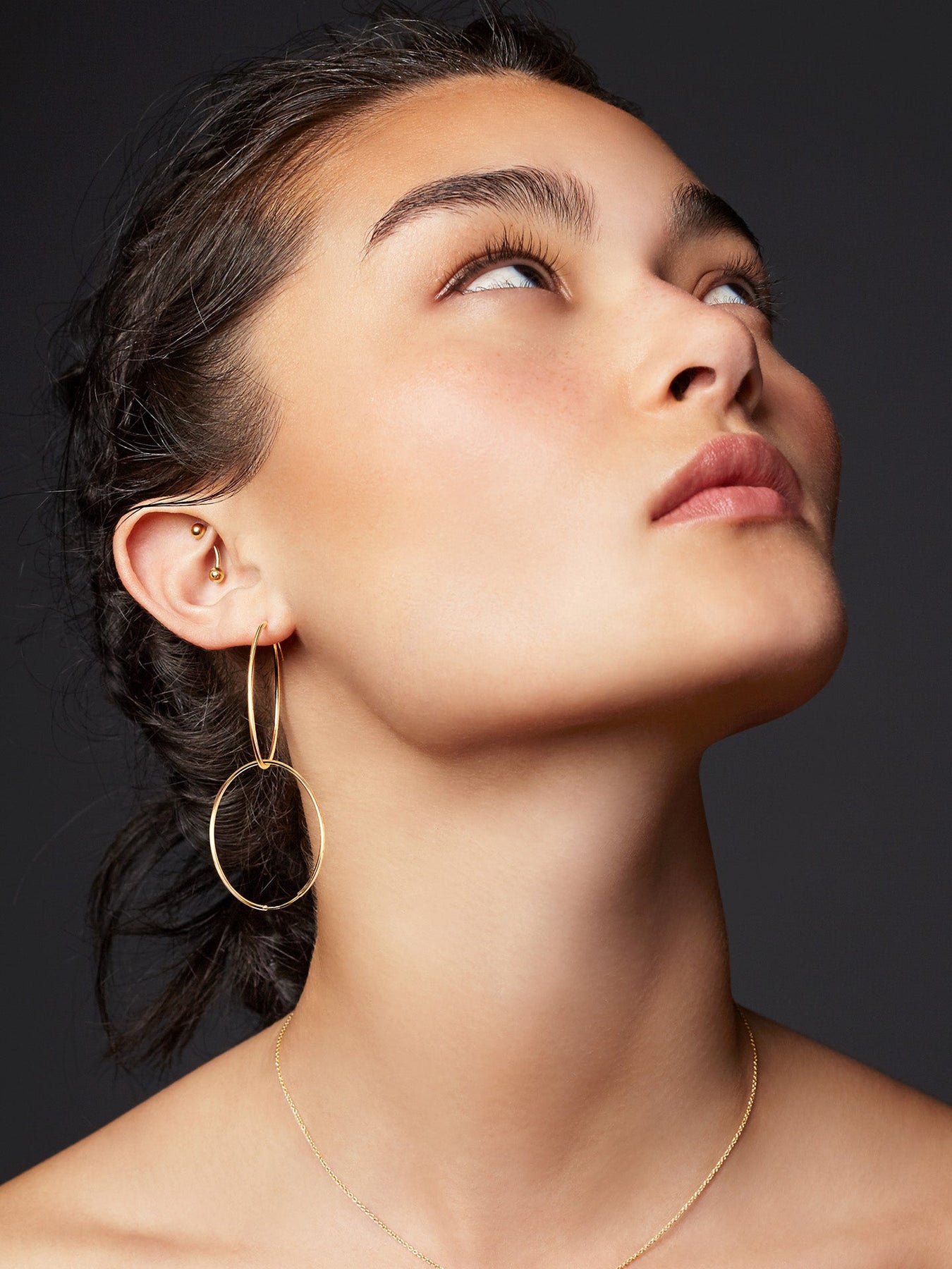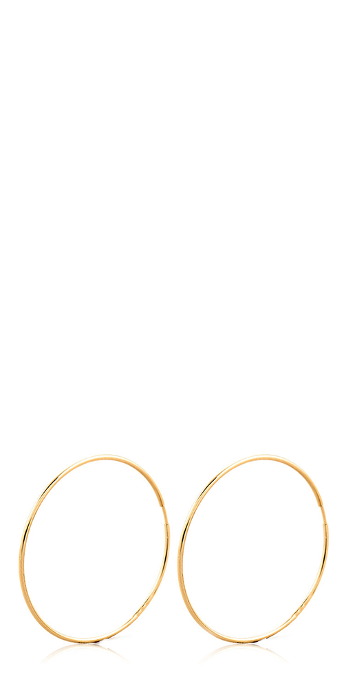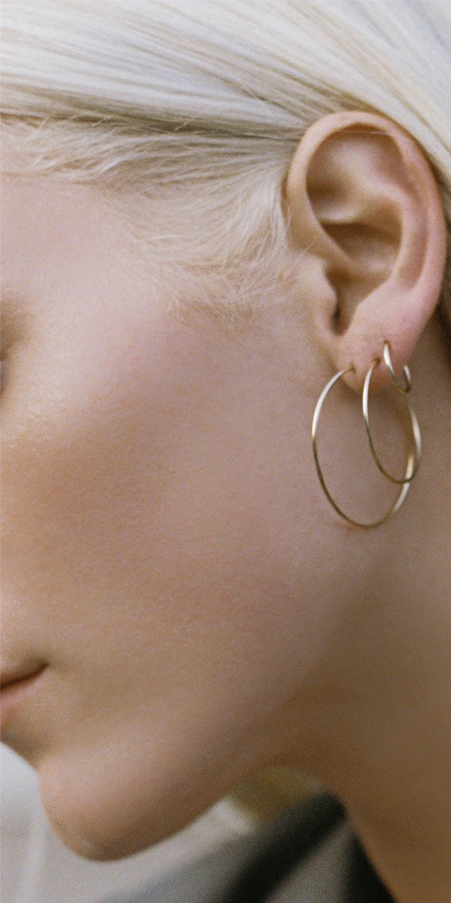 Weightless wonders. Cast from polished 14Kt gold in a delicate silhouette, the Nakita Hoops have an ultra-light, barely-there feel that’s ideal for everyday wear. Showcase their infinite elegance with swept back hair.